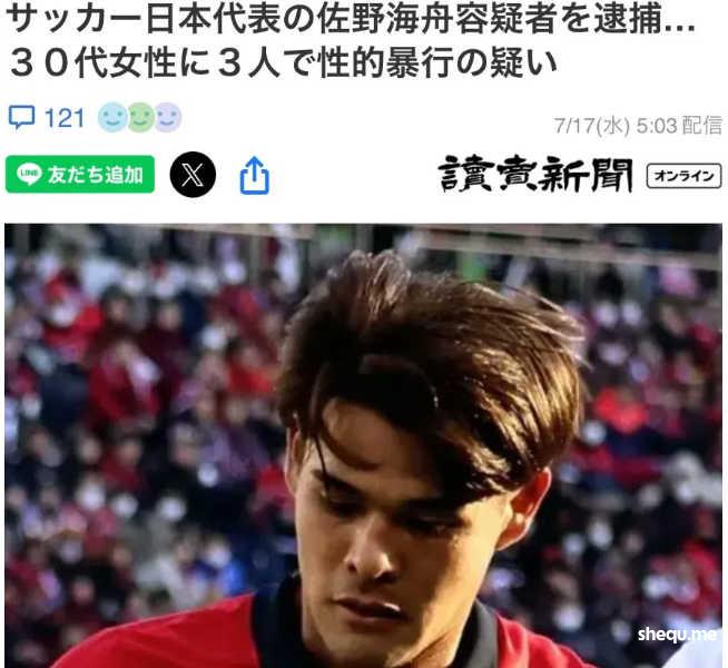 多家日本媒体报道,23岁的日本国脚佐野海舟等三名男子涉嫌在东京文京区一家酒店对一名30多岁的女性轮流性侵而被警视厅逮捕,这一惊天消息也震惊了日本足球圈。